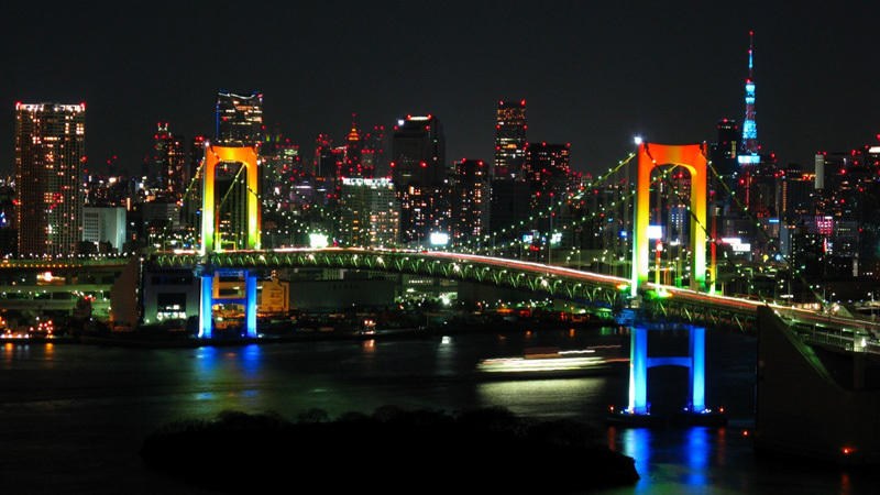 C’est sans doute l’un des ponts les plus insolites. Ce pont suspendu au-dessus de la baie de Tokyo relie les quais de Shibaura et l’île artificielle d’Odaiba à Minato. Des lampes sont placées sur les fils soutenant le pont et sont illuminées la nuit par trois couleurs différentes : le rouge, le blanc et le vert et ce, en utilisant l’énergie solaire emmagasinée pendant la journée.