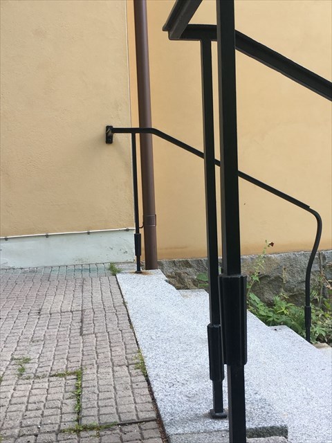 Antal stolpar i de två räckena av järn närmast utanför kyrkporten (förtydligande: det är ett kort järnräcke bredvid en liten stentrappa och ett långt järnräcke - se fotot nedan för den karaktäristiska detalj, som finns nedtill på stolparna; räkna samtliga stolpar med en sådan detalj längs båda räckenas hela längd) = D (ett tvåsiffrigt tal med tvärsumman 5)