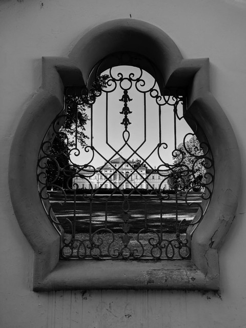 Finestra posta sull'entrata principale con visuale sulla villa: (non è una tappa)