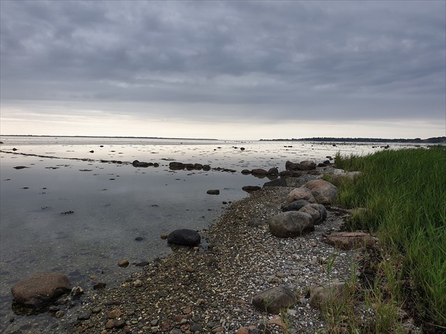Look for two dark stones lying on the edge of the beach. The “rødspættesten” is 56 x 58 x 30 cm. Here you get some help in determining the host stone. Amphibolite is typically blackish gray with a directional structure. Gneiss can have several different colors and have clear bands.