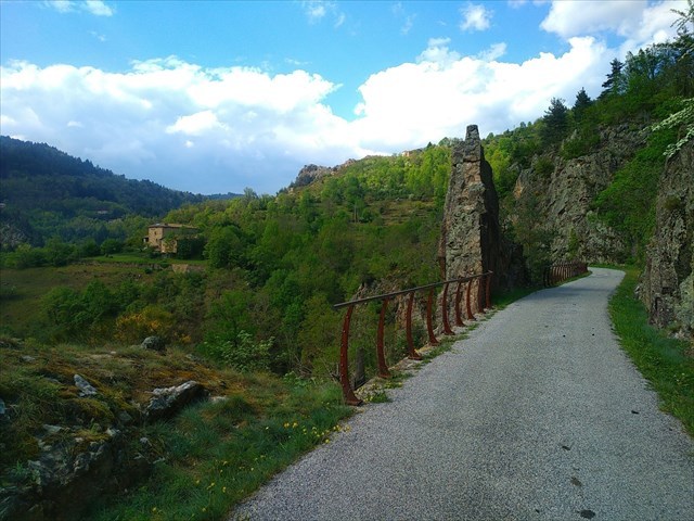 Cette cache se trouve sur la Dolce Via, d’où sa facile accessibilité. Elle se trouve à hauteur d’une des méandres de l’Eyrieux avec une maison très ancienne, sise sur un promontoire. De plus cette maison était alimentée en eau par une béalière avec une caractéristique particulière. Lors de la construction de la ligne de chemin de fer (CFD) au début du XXième siècle, la béalière a été suspendue sur un petit pont, ce, afin de continuer d’alimenter la maison. A ce jour, il ne reste que les 2 piles du pont.