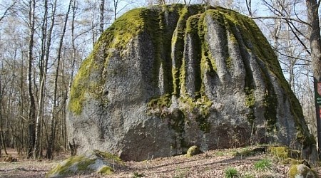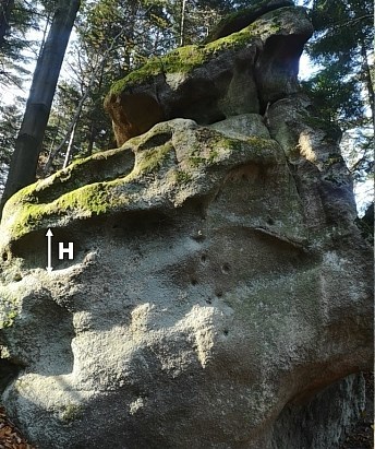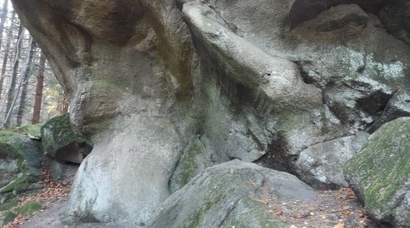 Po przejściu około 30 m czarnym szlakiem w dół na północ, po lewej stronie zobaczysz charakterystycznie wyrzeźbiony głaz pokazany na zdjęciu poniżej.
