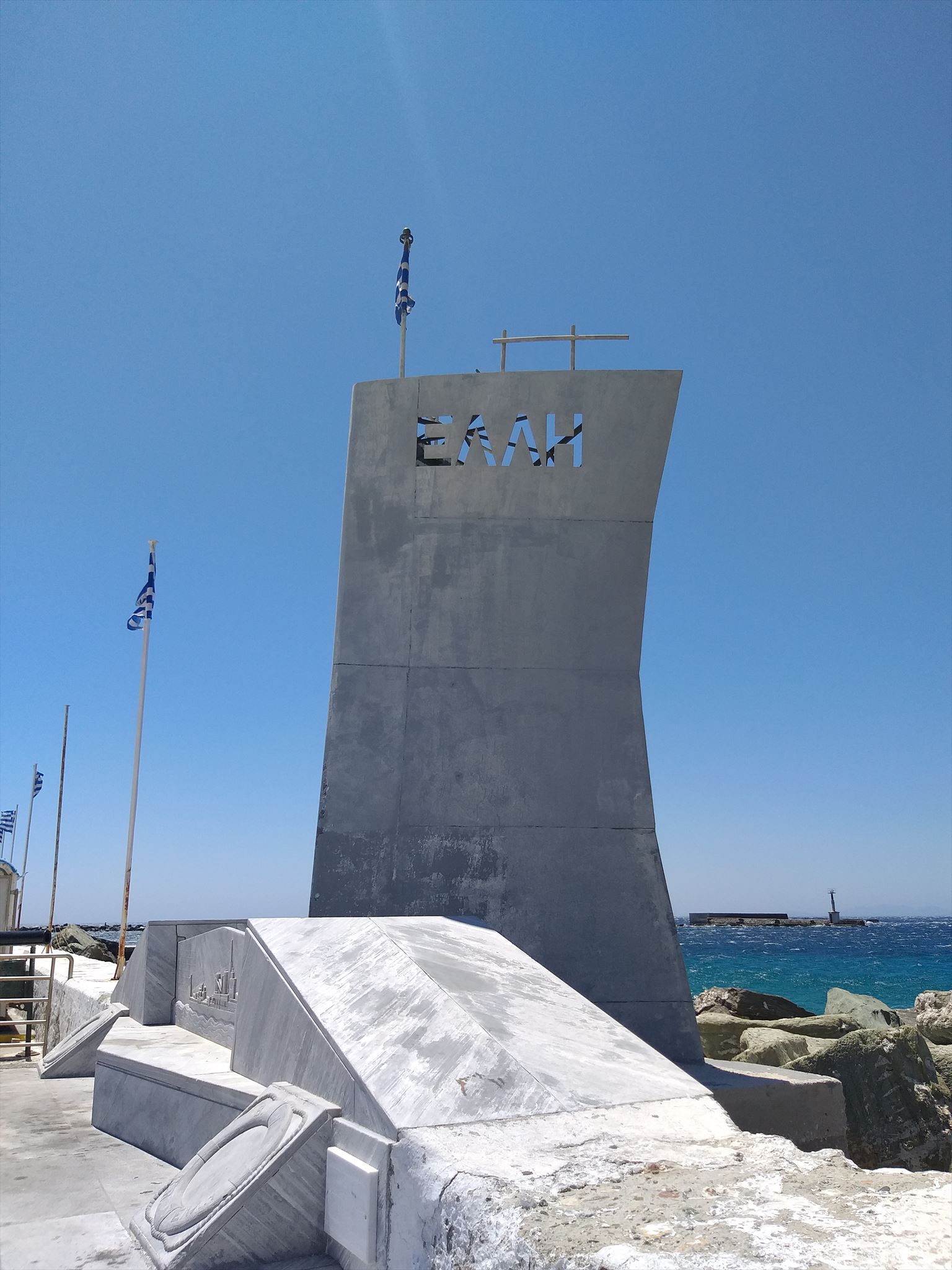 The submarine releases two more torpedoes, probably aimed at the ΕΛΣΗ and the ΕΣΠΕΡΟΣ passenger ships. But, the torpedoes explode on the waterfront, destroying only a portion of the port's platform, without causing casualties. At the point of collision, a monument has been erected and every year on 15 August, wreaths are laid in honor of the dead sailors and officers of ΕΛΛΗ.