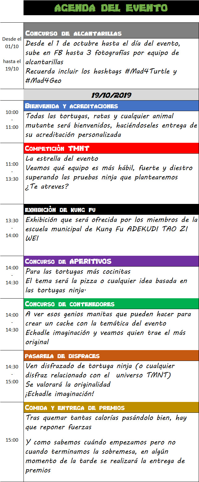 2019 marca el 35 aniversario de las Tortugas Ninja y, para celebrarlo, Geocaching se ha asociado con El Ascenso de las Tortugas Ninja de Nickelodeon para lanzar rastreables de edición limitada de Raph, Leo, Mikey y Donnie por todo el mundo. Estas chapas se entregarán en este evento, y aunque su número es limitado, se distribuiran de forma justa y divertida.