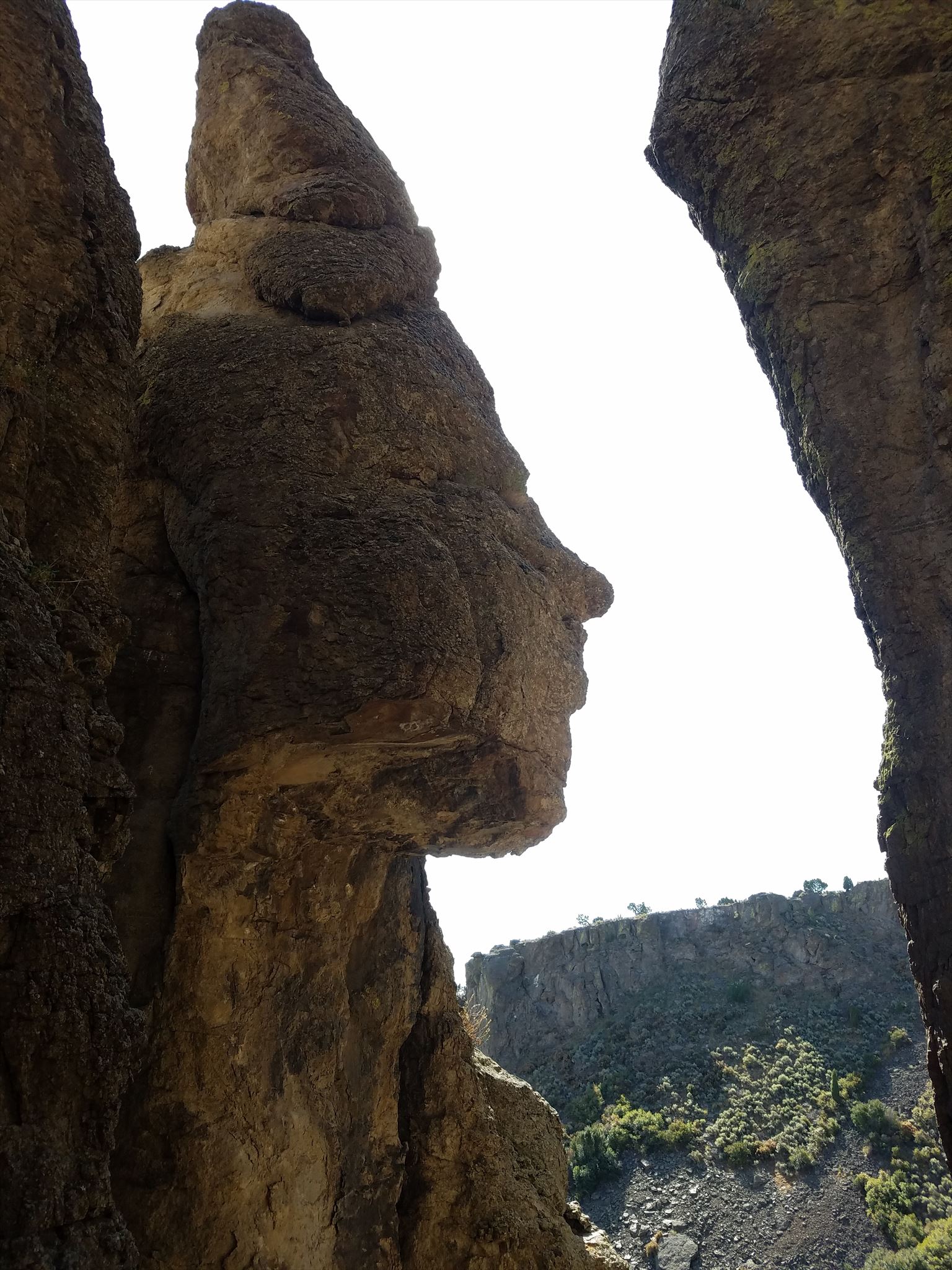 Welcome to a band of cliffs I know as Hyperion Cliffs, named after one of Saturn's moons for their unusual unearthly appearance. They sit upon the slopes of Howard Mountain, though I have heard of this landmass being called Facer Mountain. I wonder if this face in the rock is where that name came from, or just the Facer family in the area. Either way, the face in the rock is the crowning beauty of this cliff band. It is possible to scramble up or down to the cache location, but I strongly recommend rappelling equipment.