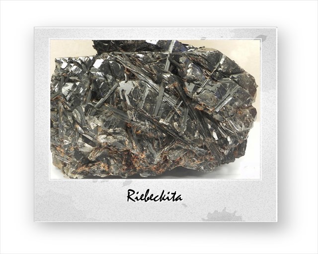 La riebeckita forma una serie con Magnesio-riebeckita, que es el miembro final dominado por el magnesio. Que tiene magnesio en sustitución de parte del hierro en su estructura. Los cristales de riebeckita se incluyen con frecuencia dentro de los cristales más grandes de cuarzo, y algunas veces hacen que el cuarzo adquiera un color azul si la inclusión es muy fina. La riebeckita fue nombrada después del explorador y mineralogista alemán Emil Riebeck (1853–1885).