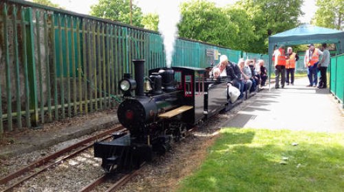 The railway's 7¼" gauge track runs for almost a mile around Runcorn's Town Park. Opened in 1979, the railway is run entirely by volunteers, and trips around the circuit take about ten minutes.