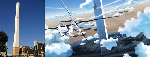 豊島清掃工場は、東京二十三区清掃一部事務組合が管理を行う清掃工場であり、一日に約400トンのゴミを処理しています。焼却炉の余熱利用として、出力7800 kWの廃棄物発電と、隣接する豊島区立健康プラザとしまへの温水の提供を行っています。煙突の高さは、東京都にある工場煙突としては最も高い約210メートルであり、周辺景観への調和のためにデザイン性の高い外観となっています。この煙突は、新海誠監督によるアニメーション作品「雲のむこう、約束の場所」(2004年)の作中に登場する「塔」のイメージモデルとされています。