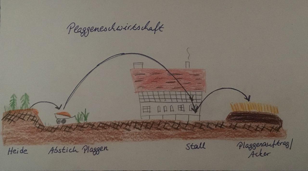 Hierbei wurden Heide- und Waldböden als Plaggen abgetragen und im Stall als Einstreu verwendet. Die dann mit tierischen Ausscheidungen angereicherten Einstreuböden wurden dann wieder auf den Feldern ausgebracht und als Dünger eingesetzt.