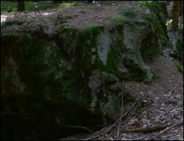 2.) Gehe zum Quarzitkonglomeratblock zu deiner linken und schau dir einmal den Boden genau an. Was spricht hier dafür, dass dieser Stein an diese Stelle bewegt wurde?
