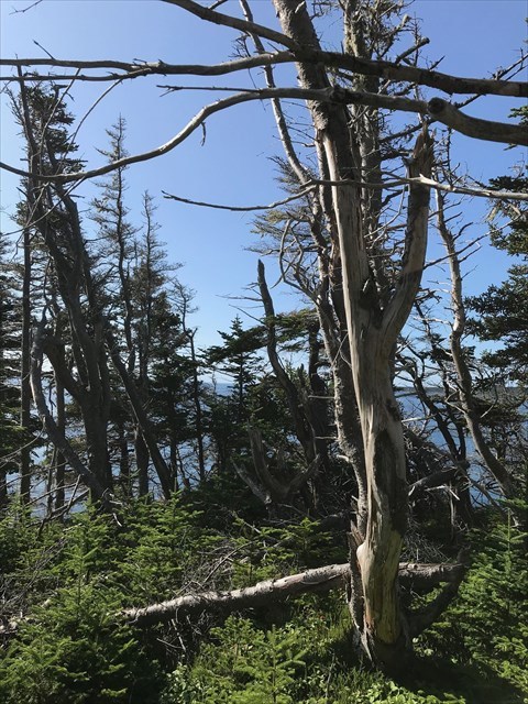 This section of the trail gives way to a small grove of trees that look a lot like pitch forks, all of various sizes. A great spot for a cache maybe?? All you have to do it find the right little devil that's hiding it!