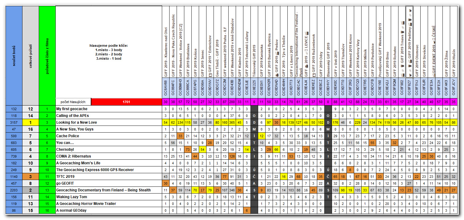 Hlasování a vyhodnocení GIFF 2019 - ČR & SR: