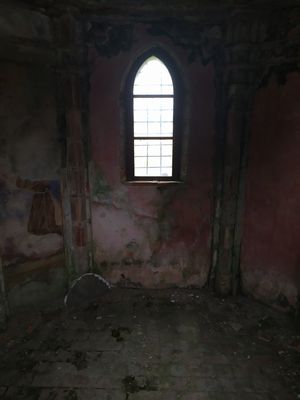 Lateralmente ci sono due finestre, anch’esse ad arco a sesto acuto e sormontate da aperture semicircolari, poste in asse, probabilmente create per migliorare la stabilità dell’apertura “gotica”.