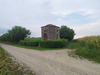 Seppur non di origine antichissima, il tempietto costituisce una testimonianza di una cultura ormai scomparsa; uno spaccato di vita e di storia contadina che ormai è sempre più difficile da trovare e, per questo, meriterebbe di essere valorizzato meglio. Piazzando qui un cache, il mio scopo è anche quello di valorizzare l’idea di Liva Bernardino detto Ros che voleva forse lasciare ai posteri un suo piccolo segno realizzando questa costruzione votiva.