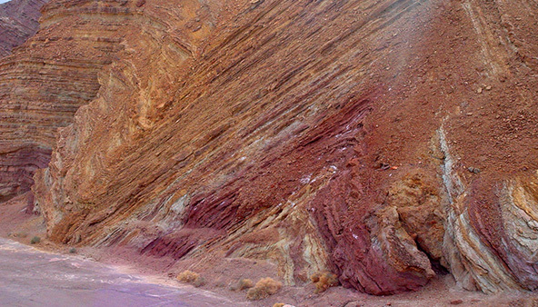 Thickly-bedded, brittle units tend to form concentric folds with the bed thickness preserved normal to bedding surfaces. Thinly-bedded, clay-rich units have a tendency to develop a foliation parallel to the axial plane and form similar folds with the vertical distance between top and bottom of the unit preserved through the deformation.