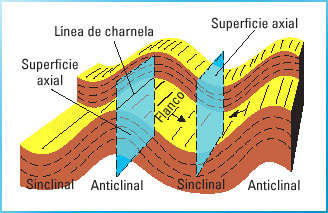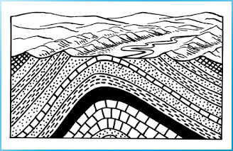 ► Anticline: linear, strata normally dip away from axial center, oldest strata in center.