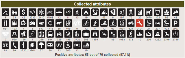Wenden wir uns doch einmal den positiven Dingen des Cacherlebens zu, zum Beispiel ein freier Parkplatz in Dosennähe, Cache ist rund um die Uhr erreichbar, keine Muggel in der Nähe, noch viele freie Plätze im trockenen Logbuch und natürlich ein Stift, wenn der eigene mal wieder vergessen wurde. Für viele dieser wünschenswerten Eventualitäten kann ein Owner sein Cachelisting mit einer Anzahl an Attributen dekorieren, damit der angehende Finder sich gut informiert auf den Weg macht. Auch helfen Attribute manchmal, die möglichen Verstecke vor Ort einzugrenzen (für Rollstuhlfahrer geeignet, schneesicher) oder die passende Ausrüstung einzusetzen (UV, Chirp, Taschenlampe).