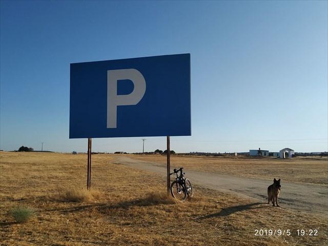 Los casareños lo hacen todo a lo grande. Han hecho esta explanada parking (que por cierto, nunca he visto más de dos coches aparcados), y han puesto una señal que se ve desde la Sierra de Gredos. No me he podido contener y he puesto un caché.