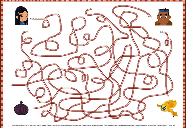 Rätsel Nummer 1: Löse das Labyrinth, was du machen muss steht auf dem Bild.