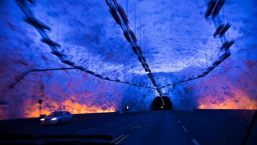 Vous cherchez un tunnel routier de 24,5 km reliant deux villes de Norvège. Depuis son ouverture en 2000, c’est le plus long tunnel routier au monde. La conception du tunnel prend en compte la contrainte de la traversée pour les conducteurs. Le tunnel se distingue par ses trois grandes cavernes creusées dans la montagne, qui cassent la routine, fournissant une vue apaisante et lumineuse.