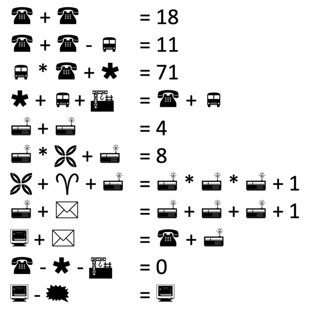 Zunächst müsst ihr aber herausfinden, welches Symbol für welche Zahl gilt. Dazu löst diese Aufgaben: