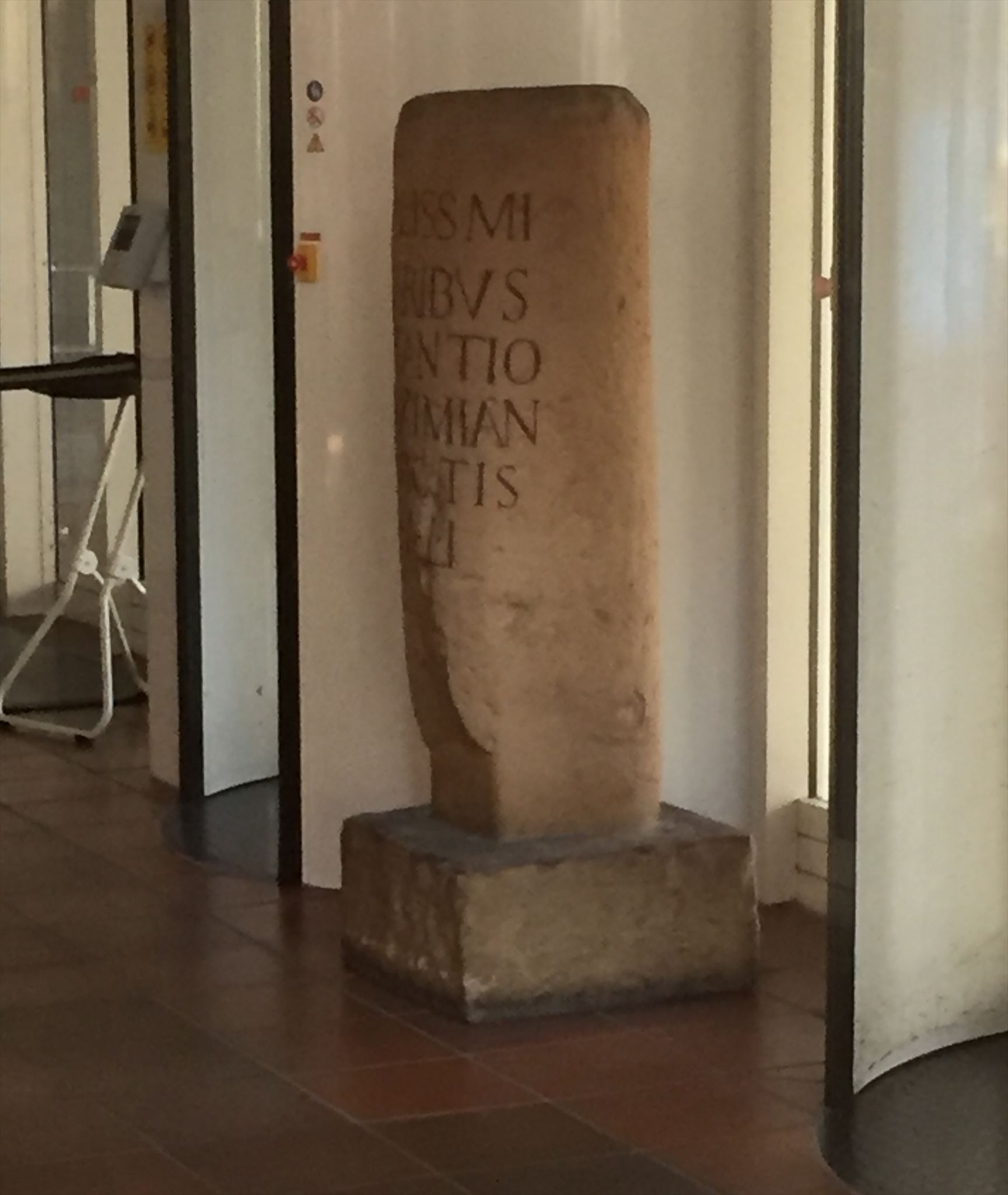 An der Stelle der Koordinaten wurde der erste Leugenstein auf der Strecke von Köln gefunden. Das Original befindet sich im RGM – ein Abdruck hier ganz in der Nähe.