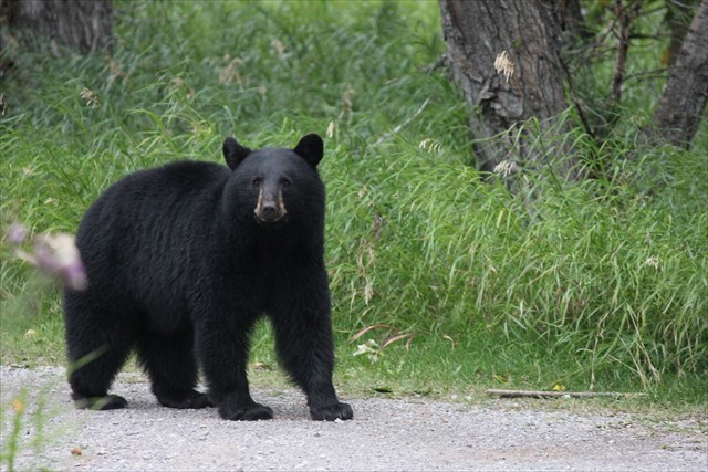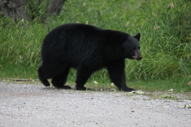 So, we came out for a drive on Saturday, and stopped here at the day-use area just to check it out and walk along the lake a bit. As we were walking along the lakeshore we thought we spotted some bear paw prints, but they didn't look that recent. We talked about how the bears were probably out at this time of year, trying to fatten up before the winter and their hibernation. We ended up deciding to place a cache here, because why not? We were kinda surprised there wasn't one here already in fact. One of us was standing at the rock where this cache is located, and one of us was standing on the path, ready to toss the cache container to the other, who was going to then place it, when one of us said "Oh, look behind you!" I turned around and not 30 feet away was a black bear, casually looking at us as it crossed the path in the park. It seemed curious, but not overly interested in us. Still, it gave us quite a start, and we really were "between a rock and a bear place." Neither of us had been that close to a wild bear before--it was pretty cool. Obviously we didn't follow or interfere with it in any way, but we did manage to grab a couple photos of it. It was a wild experience, literally.