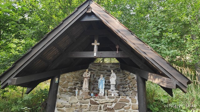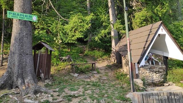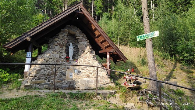 Z pôvodného prameňa živčákovskej vody, ktorý vykopal, na niekoľkonásobnú žiadosť Panny Márie, Juraj Kavalek z Turzovky je voda zvedená do výtoku v jaskynke pod sochou Panny Márie Lurdskej. Tento upravený prameň bol po dlhú dobu jediným funkčným prameňom na Živčákovej a preto mu aj Turzovčania hovoria, že je to ten pravý. Nachádza sa pri ceste, ktorá spája Živčákovú s Korňou - asi 300 metrov pred areálom kaplnky. Ešte donedávna si okolie prameňa zachovávalo svoj pôvodný vzhľad - malý, upravený výver pred oplotenou záhradkou s obrazom Panny Márie. Dnes je okolie prameňa upravené do podoby malej skalnej jaskyne, pripodobujúcej preslávenú jaskyňu zjavenia v Lurdoch.
