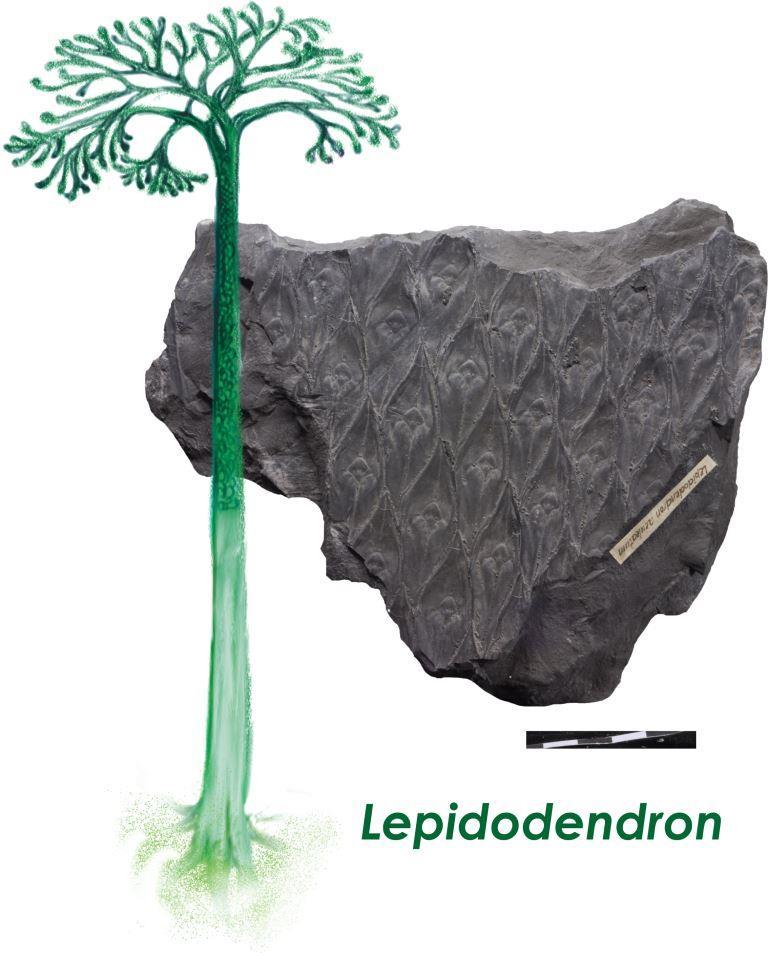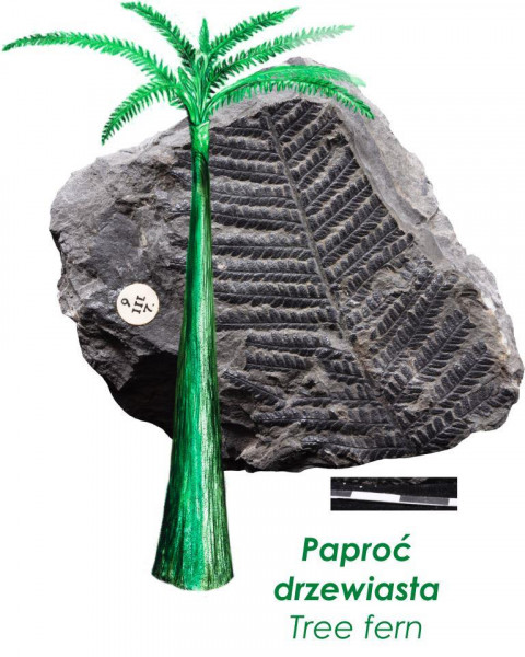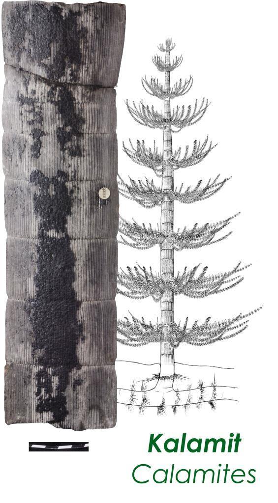 Lepidodendrons, Sigillarias and Calamites (fig 1) can be considered as one of the best known Carboniferous plants. Lepidodendrons were great lycopods that, unlike their modern relatives, were able to reach heights of up to 30 meters. On their trunks there were leaf bases which created a very characteristic, rhombic shapes. This interesting pattern allows you to easily distinguish them from the Sigillarias - also old lycopods, which leaf bases were oval. The Calamites were the great ancestors of today's horsetails.