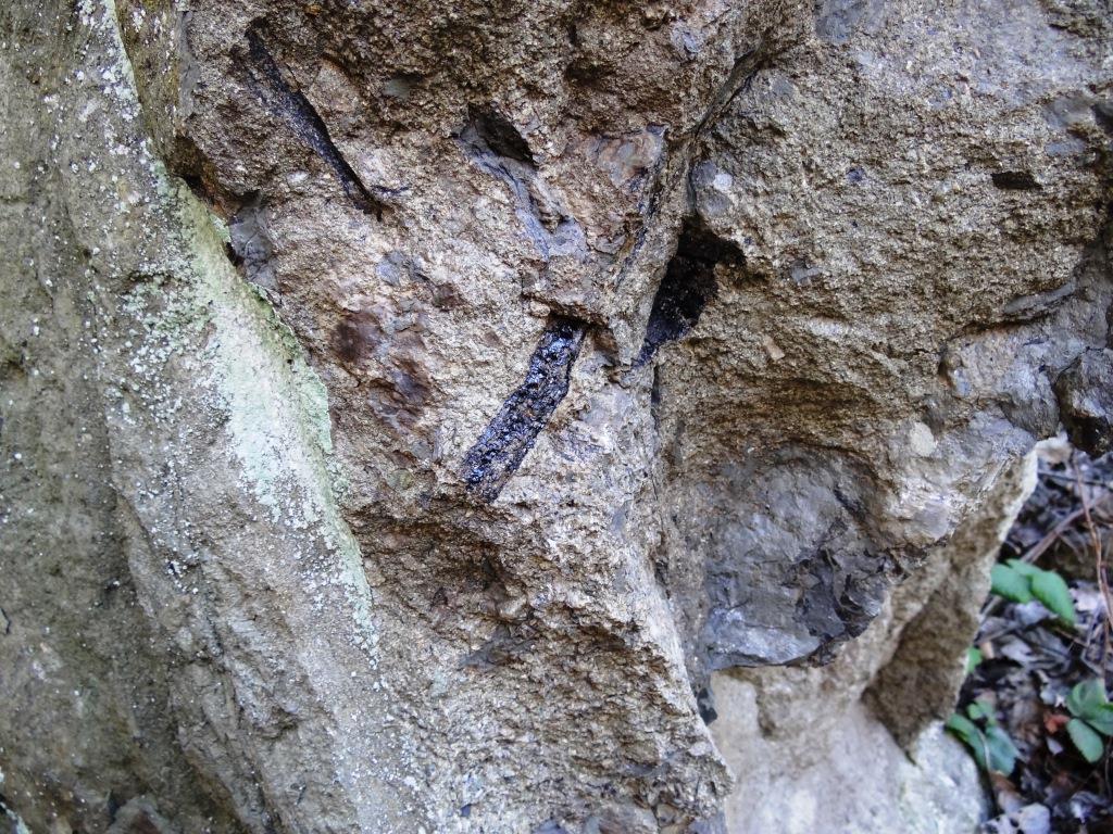 For millions of years, gravels, sands and silts carried by the river and deposited in the sea turned into solid rocks: conglomerates, sandstones and mudstones. Imprints of plants have survived in the sediment. Some of them are small, while others are quite impressive, like the trunk imprint, which is the main attraction of this cache (fig. 2). Warning! The trunk is not visible at first glance, you need to look for it (or use an additional hint). Part of the plant matter carried by the river changed into coal over time (fig. 3).