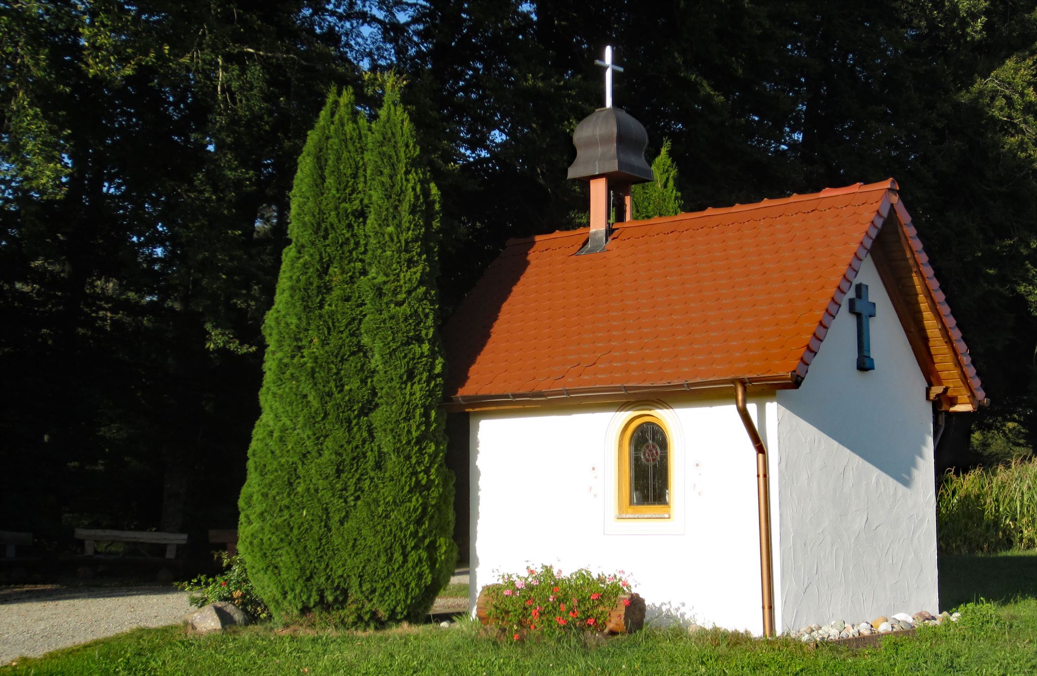 Die Bruder-Klaus-Kapelle wurde 2001 aus Dankbarkeit nach der Genesung von schwerer Krankheit (Leukämie) gebaut und eingeweiht. Sie steht Tag und Nacht für die Menschen offen, besitzt keine Eingangstür, und lädt ein, in Gottes freier Natur zu beten und zu singen.