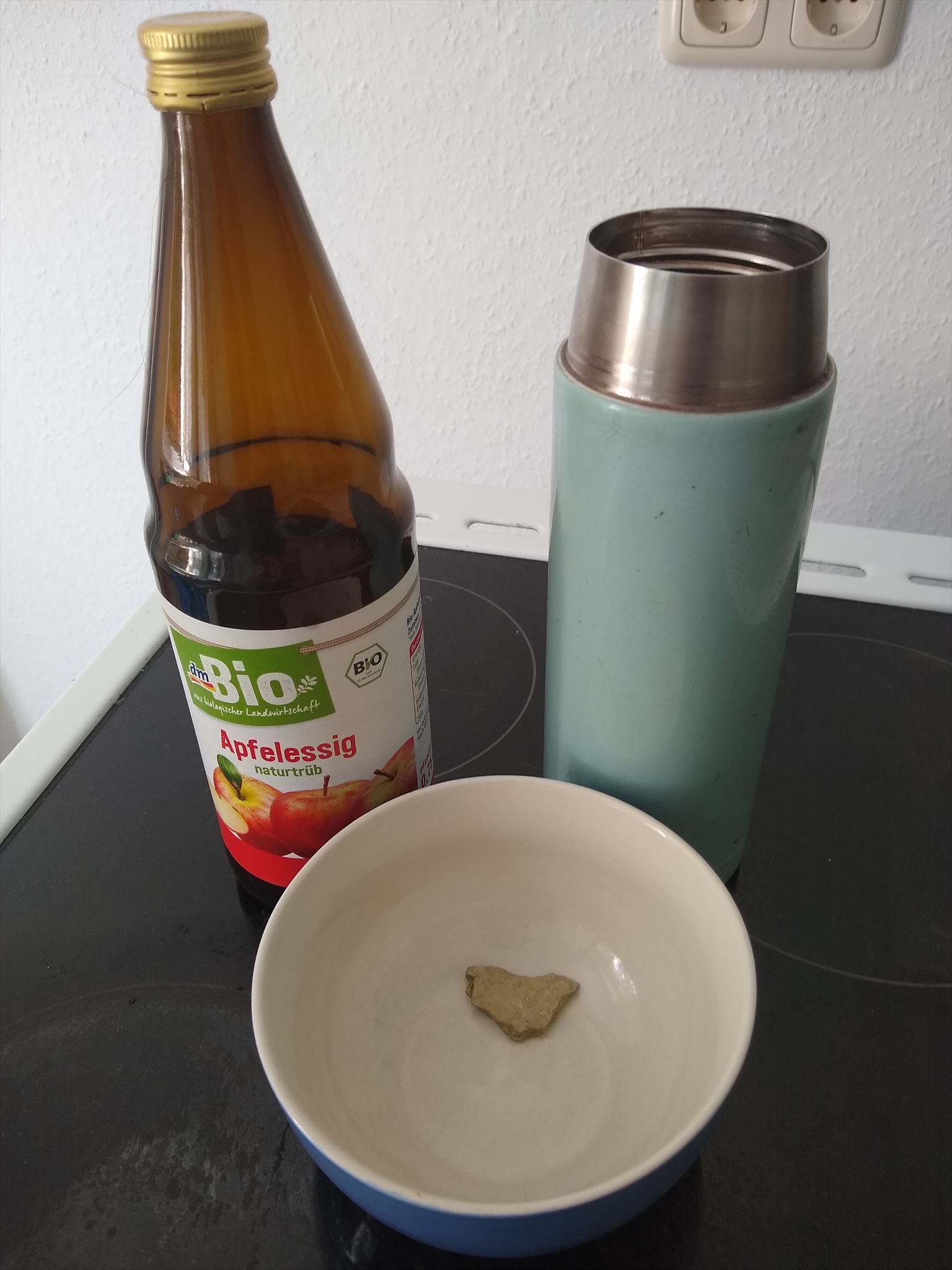 6.) Legt euer Fundstück in eine Glas- bzw. Porzellanschüssel. Gebt Essigsäure darauf und beobachtet die Reaktion. Was passiert bei deinem Versuch?