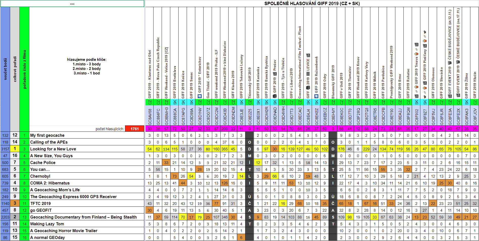 Groudspeak každoročně vybere nejlepší videa, která je pak možné shlédnout na eventech konaných po celém světě pro tento rok v období od 7.11. do 17.11. Na eventech pak probíhá hlasování. Stejně jako minulý rok zde uveřejníme výsledky hlasování za Českou i Slovenskou republiku.