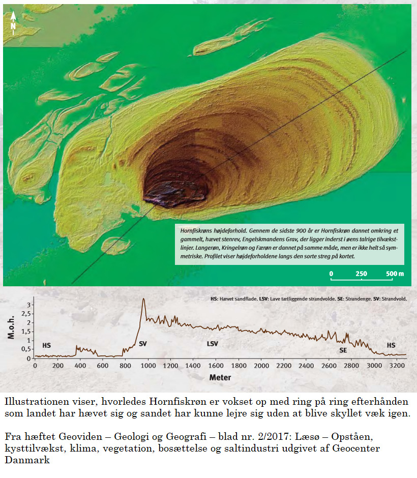 For ca. 900 år siden opstod Hornfiskrøn omkring det noget større stenrev ved navn Engelskmandens Grav. Det er Danmarks største stenrev omgivet af yngre land. Endnu er Hornfiskrøn en selvstændig ø, som man skal vade gennem vandet for at komme ud til, men mon ikke også den over tid bliver landfast med Læsø. For at logge denne earthcache skal du ikke ud på Hornfiskrøn, men vi kan kun opfordre til at prøve kræfter med turen gennem vandet og dermed muligheden for at se Engelskmandens Grav. Vi har lavet et ekstra WP med Engelskmandens Grav ligesom Saltstenen ude i vandet har fået et.