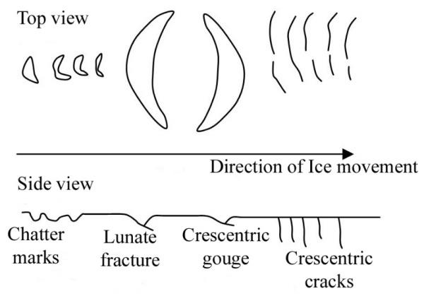 Larger rocks and stones within and under the glacier’s base gouge stratch lines, chatter marks and grooves as they were carried across rock surfaces. It is these marks that help us to determine the travel direction of the glacier. Geologists call these marks glacial striations.