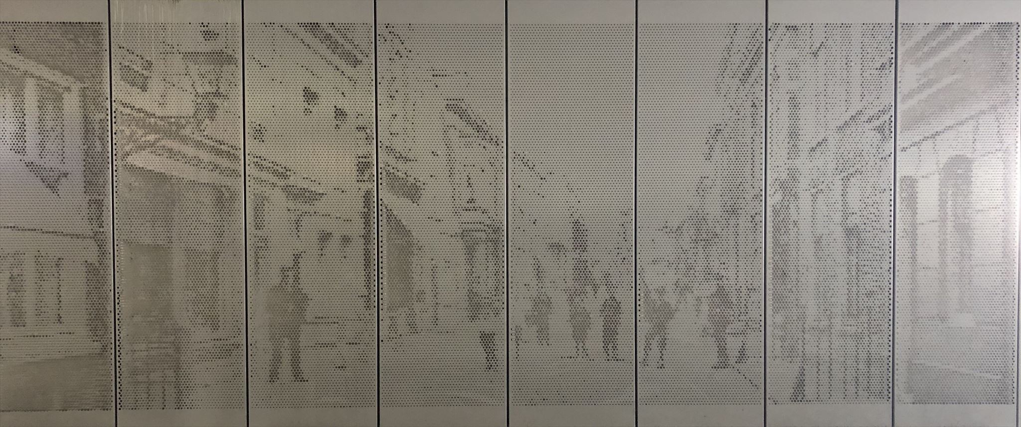 Voorburg is er een aantal jaren geleden in geslaagd om de urban omgeving waar je nu bent, te verbinden met het straatbeeld rond deze plek rond 1890. Met een geweldig inventief proces heeft men hiermee deze prachtige neo-pointilistische fresco aan ons Geocachers aangeboden.