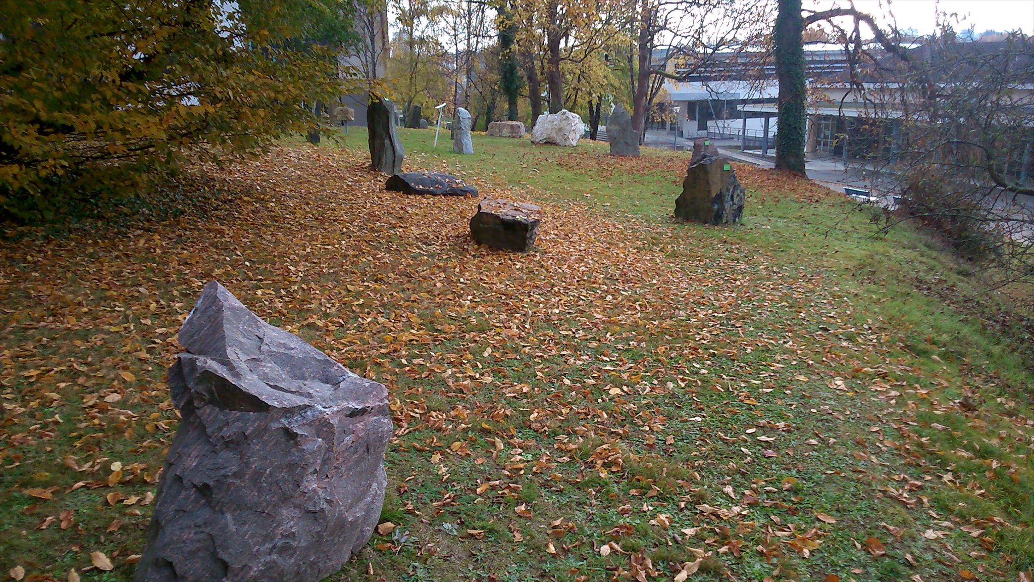 roches pesant chacun entre 1 et 3 tonnes sont disposés sur le campus