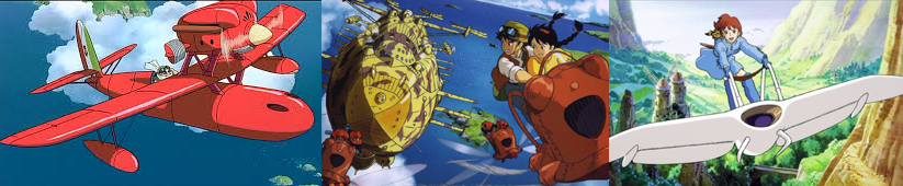 Miyazaki Hayao's persistence about flying can be found in his movies, such as Porco Rosso, Castle in the Sky, Nausicaä of the Valley of the Wind. You can see many different aircrafts in these scenes.