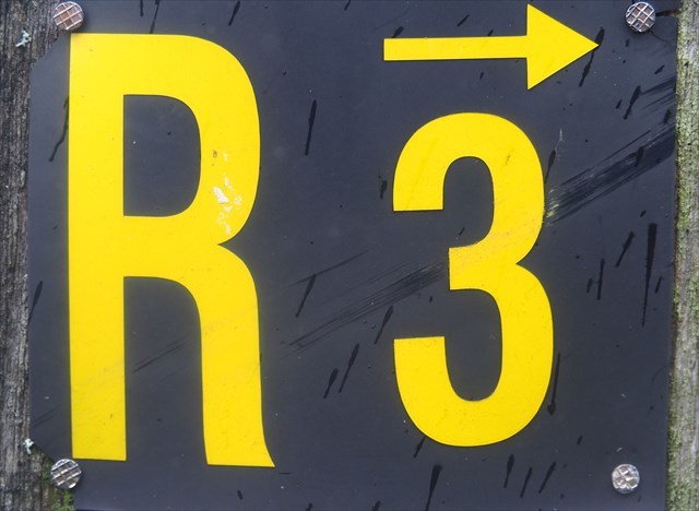 Die hervorragende Beschilderung beginnt oberhalb des Restaurants im Bereich des Sendemastes. Der Rundweg ist mit "R3" gekennzeichnet und verläuft im Uhrzeigersinn. Schnell verschwindet der Rundwanderweg im Wald auf idyllischen Wegen, die ohne Schotter und Asphalt auskommen.