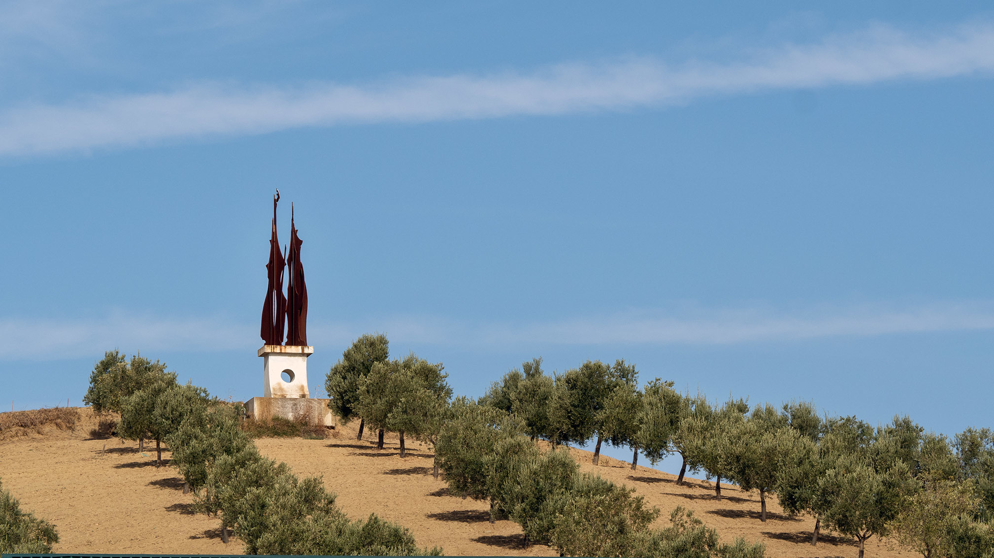 Juan Zafra says he has played with the holes in the back and with the light to create a sense of volume. In addition, the sculpture, whose shadow is cast on the highway at sunset, is completed with a concrete pedestal, which has been necessary to be able to solidify the ground.