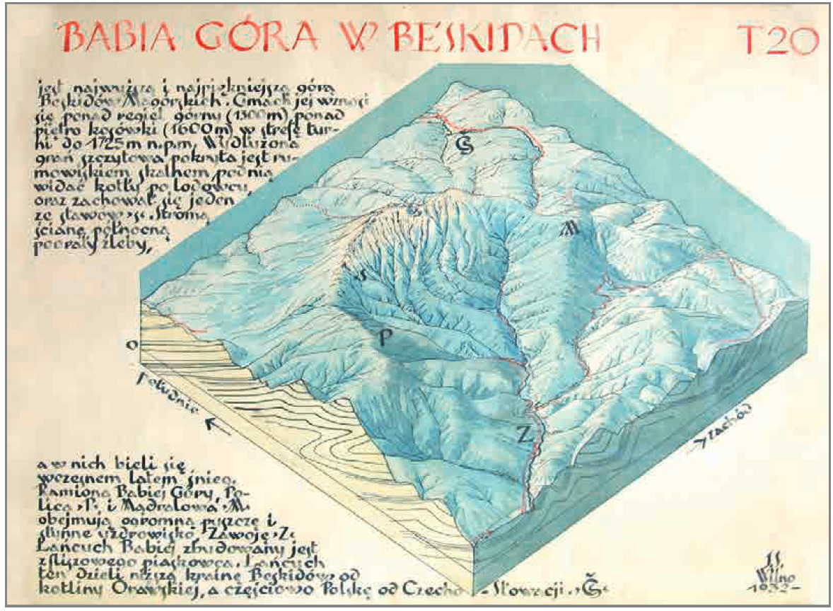 Rys. 2 Szkic Babiej Góry aurostwa J. Sarnickiego (źródło: S. W. Alexandrowicz "Jan Sarnicki – nauczyciel, geograf, twórca map plastycznych", Wadoviana, 12, 171-231, 2009)