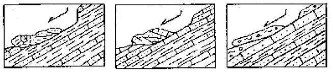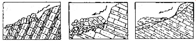 lub takie, w których powierzchnia zniszcznia (poślizgu) przebiega prostopadle lub pod znacznym kątem do głównego kierunku uwarstwienia, tzw. insekwentne (Rys 11).