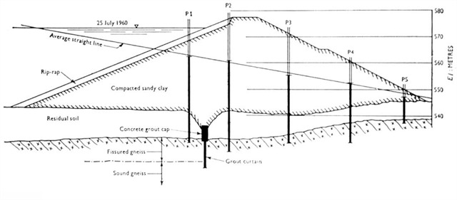 Eventually it was determined that the grout curtain was not adequate, and the soil was not evenly placed and compacted. Together they led to the failure on the side of the dam.