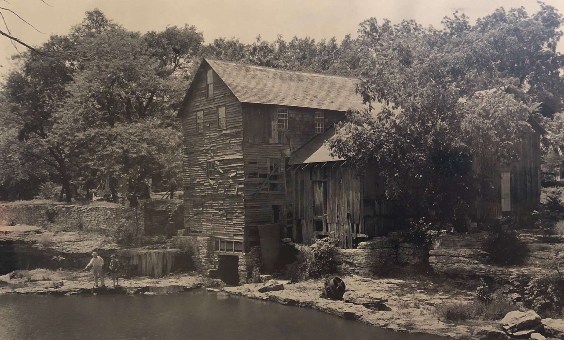 Well before it was coined “Watts Mill,” it was referred to as “Fitzhugh’s Mill.” In the 1830s, John Fitzhugh and his brother George plotted 40 acres on Indian Creek. The rushing waters, limestone edges and waterfall proved to be a perfect location for a sawmill. They dammed up Indian Creek and took a gamble on what at the time was the edge of civilization, using hand-hewn native oak and walnut to erect Fitzhugh’s Mill — one year before Westport was platted and 20 years before Kansas City was founded!
