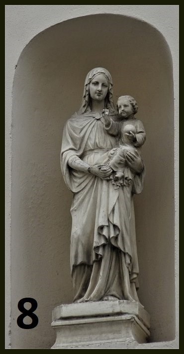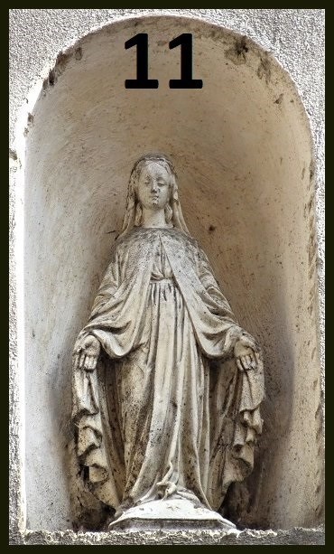 C'est en faisant une visite guidée du centre ville, que j'ai découvert qu'en levant la tête, nous pouvions observer dans le centre historique de Rennes beaucoup de "niches à vierge", et de nombreuses autres statues religieuses (Sainte Anne, Saint Joseph, ...).