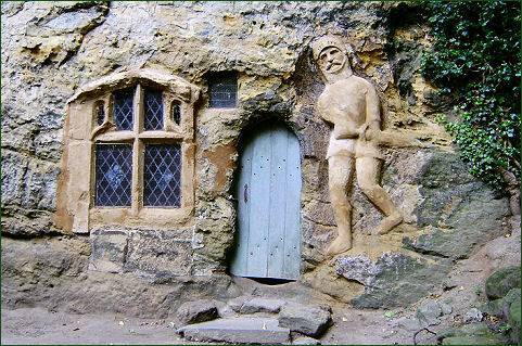 The tiny medieval Chapel of Our Lady of the Crag lies a stone's throw from the River Nidd, about half a mile from the centre of Knaresborough, North Yorkshire. It was carved from the cliff face by John the Mason in 1408, permission being granted by King Henry IV. The Chapel was probably built as a wayside shrine for pilgrims walking between the town and the Priory, and possibly going further afield. It would also have been a place of quiet and prayer for the quarrymen working in the quarry nearby.