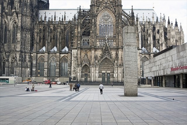 an der Granitsäule auf dem Roncalliplatz (bei schlechtem Wetter können wir in den trockenen Durchgang beim nahegelegenen Römisch-Germanischen Museum ausweichen)