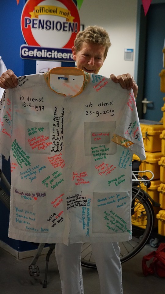 Hoewel ze het werken heel leuk en plezierig vond, ze haar collega's zeker gaat missen, is ze ook wel blij dat het nu niet meer hoeft.