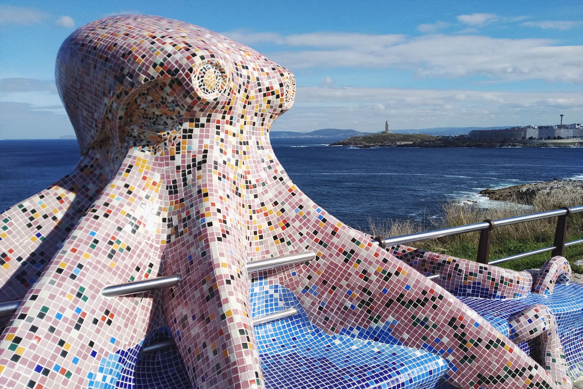 Escultura situada en el paso marĂtimo de A Coruña, prĂłxima al elevador del Monte de San Pedro. Fue realizada por el coruñés Javier M. PadĂn MartĂnez, en hormigĂłn armado y recubierta de pequeñas piezas cerĂĄmicas de colores, que parecen cambiar de tono segĂșn la luz que incida sobre ellas. Una curiosa pieza que, en conjunto con la Torre de HĂ©rcules, conforma una de las mĂĄs tĂpicas estampas coruñesas.