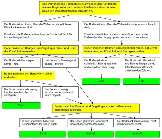 - Führe vor Ort eine Fingerprobe durch. Benutze dazu bitte Material, dass bereits am Boden liegt. Welche Bodenart liegt vor?